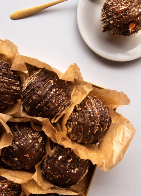 Poznaj naszą Kulę Mocy – pyszną i pożywną pralinkę, stworzoną z myślą o zdrowym stylu życia. Słodzona naturalnymi daktylami, z dodatkiem ciecierzycy, kawy oraz kremowej pasty z orzechów laskowych i arachidowych. Delikatny smak kakao i wegańska czekolada bez cukru, wzbogacona odrobiną oleju kokosowego, tworzą wyjątkowe połączenie intensywnych smaków. Duże, około 90-gramowe kulki są obtoczone w posiekanych orzechach laskowych, co dodaje im przyjemnej chrupkości. Nasza Kula Mocy to idealna przekąska dla osób na diecie bezglutenowej, bezcukrowej i wegańskiej, która dostarcza energii i satysfakcji! Teraz dostępna w zestawie 5 sztuk za 55 zł!